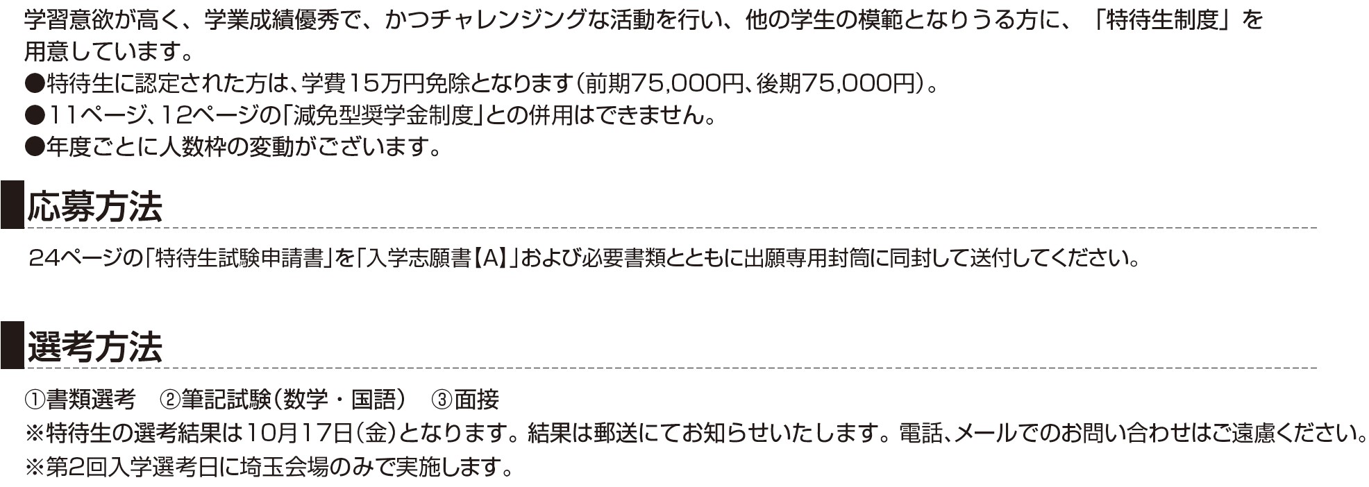 | 募集学科と定員 | 全学科 募集定員の3割程度 |