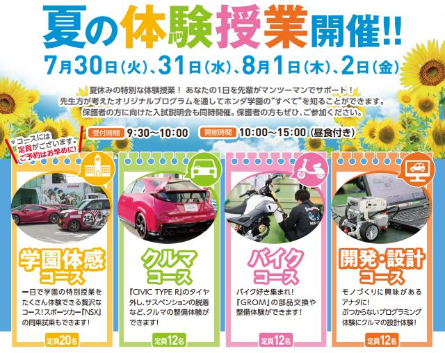 【予約受付中】夏の体験授業2019!(7月30日~8月2日)