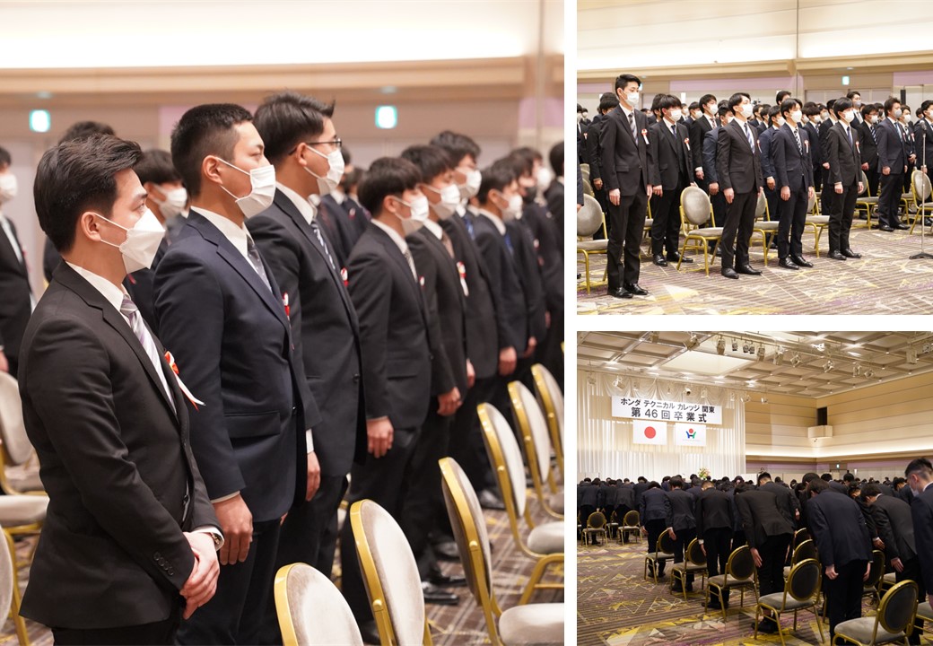今年は、学生と教職員保護者1名のみで執り行うとともに、YouTubeでのLIVE配信を実施。
