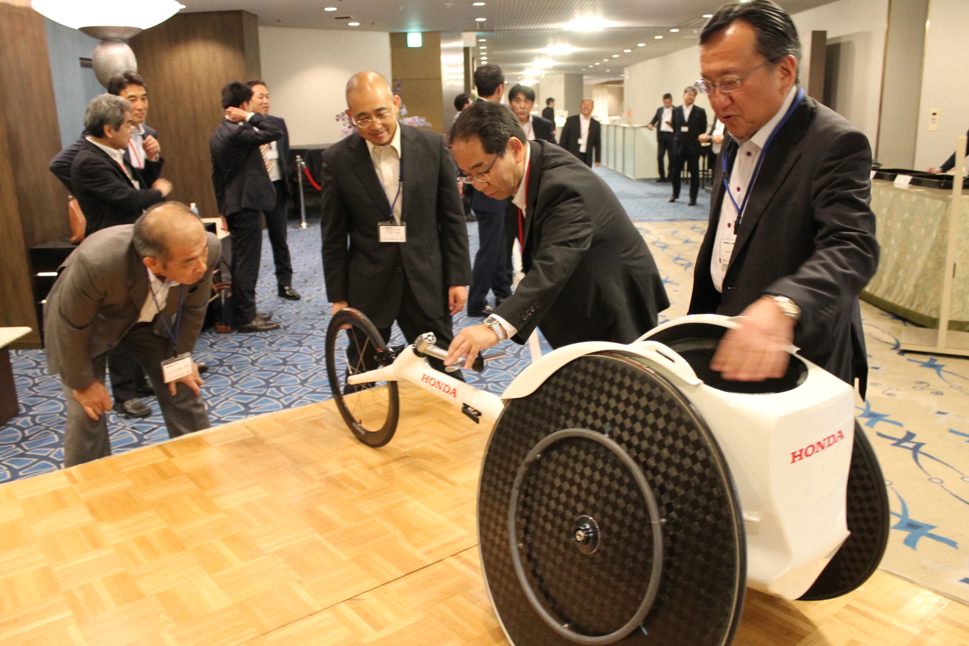 熱心に「陸上競技用車いす」について、質問する会員企業の皆様
