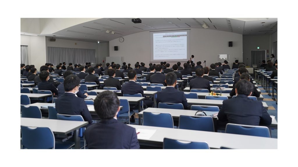 後半には身だしなみチェック、SPI試験と、本田技研工業の人事の方とオンラインでつなぎ、「就職活動を控える皆さんにお伝えしたいこと」と題して講話を実施しました。