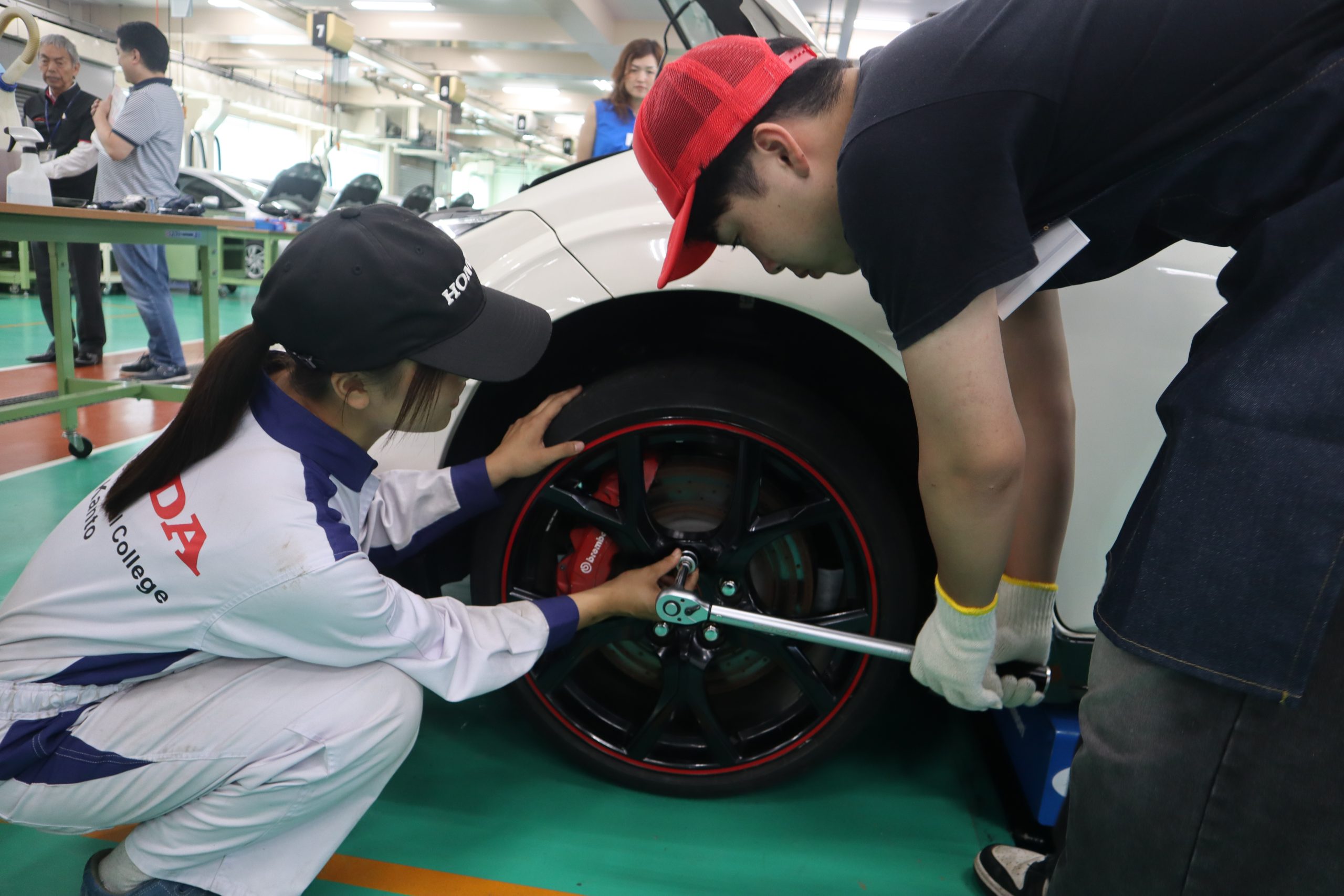 整備体験は シビックタイプRのオイル交換とタイヤ取り付けを