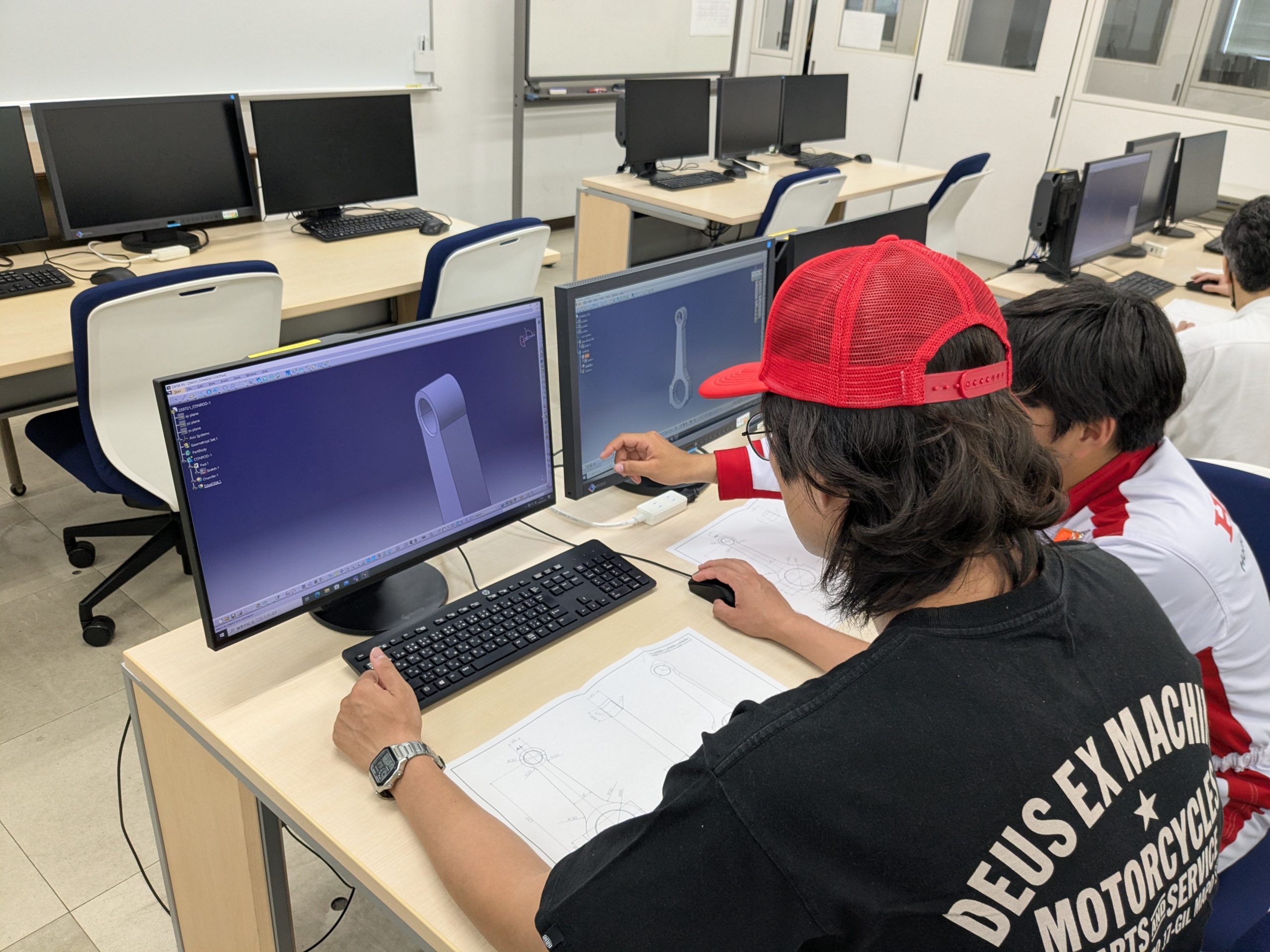 体験オープンキャンパスでは車やバイクを使用しての整備や、実際の研究所で使用するソフトや機械を触って体験することができます。