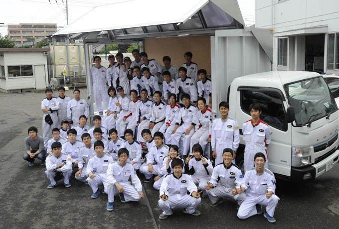 【納車されたキャンターとクラブ活動に参加している学生の皆さん】