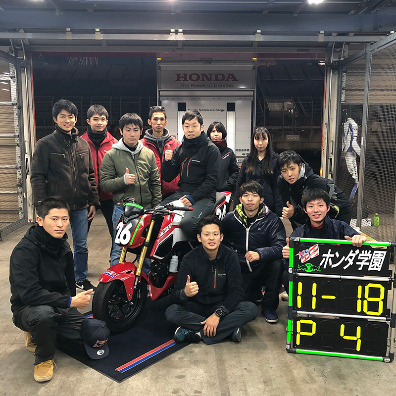 11月18日(日)“ツインリンクもてぎ”で開催された「2018 DE耐7時間耐久レース」に出場しました。ミニバイク部の一年間の集大成で臨んだ今回のレース。部員たちの熱い思いが込められたマシン。レース条件である一回あたりの給油量やピットストップ時間も作戦通りに上手く乗り切り、レースアクシデントにも巻き込まれることなく、安定したタイムを刻み続けました。