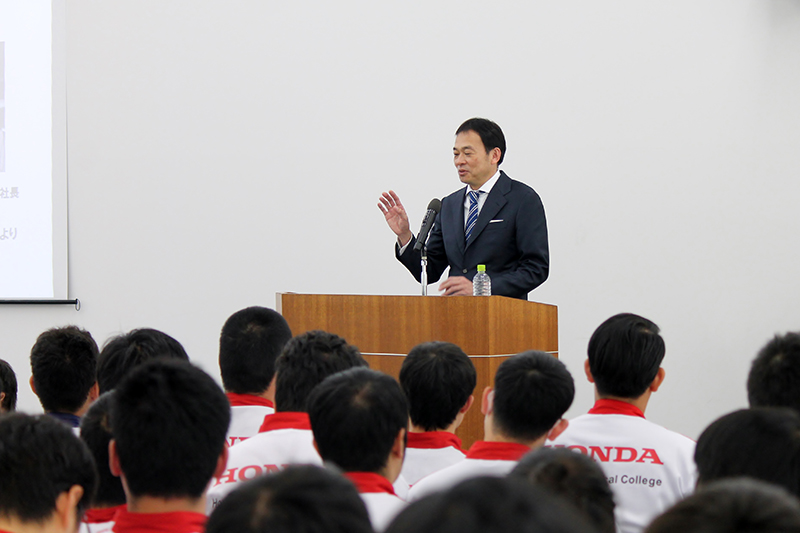 - 11月26日(月)に本田技研工業(株)執行役員 兼 ホンダ学園理事長の寺谷公良さんによる「トップセミナー」を開催しました。