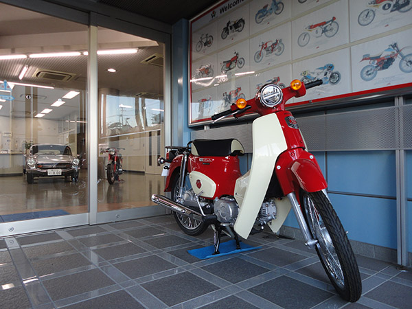 入荷したスーパーカブは、1963年に米国で広告展開された「ナイセスト・ピープル・キャンペーン」に描かれたイラストをモチーフとした、マグナレッドのボディーカラー。また、ツートーンシートやブラック塗装のリアキャリアを採用。更に60周年記念の特別エンブレムとキーを採用した特別限定車です。