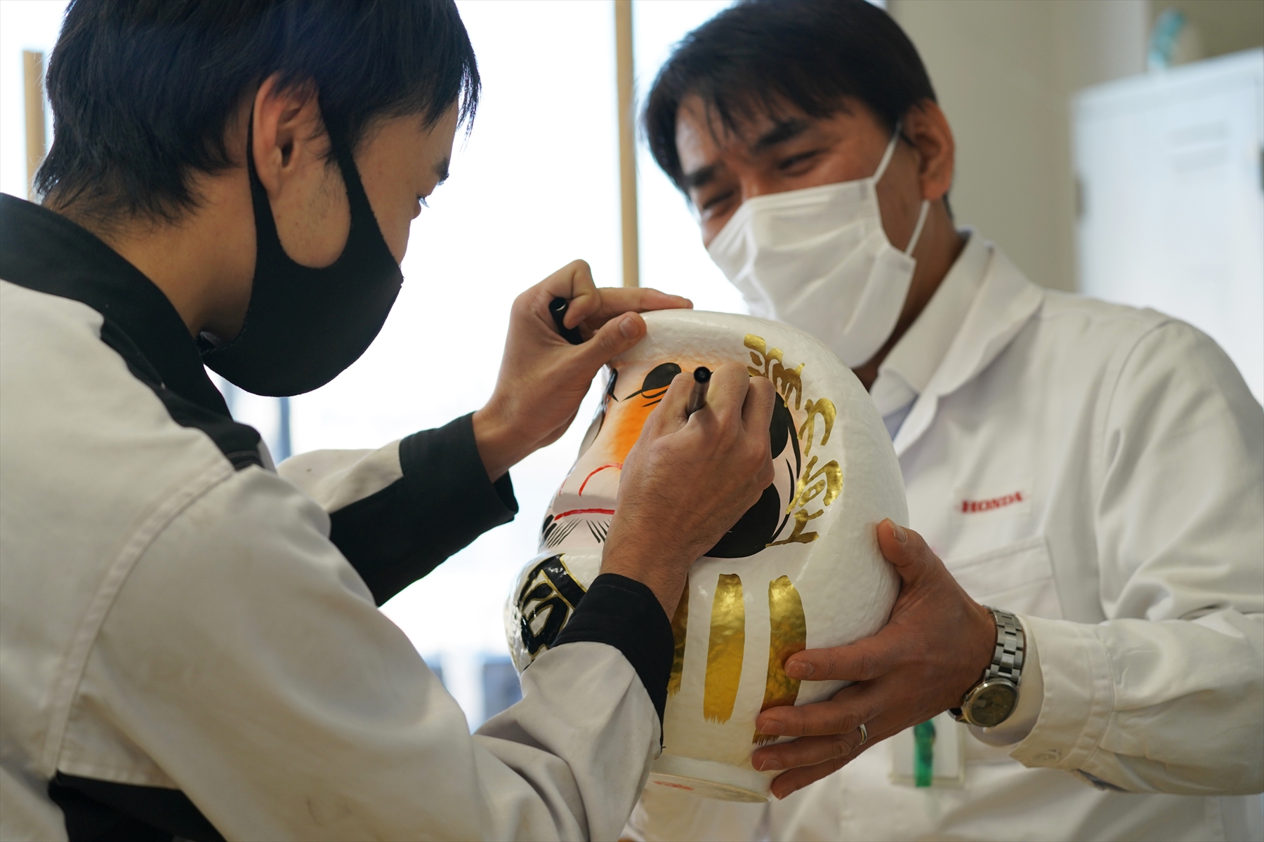 - 最後は恒例の「だるまの眼入れ」で全員合格の祈願!