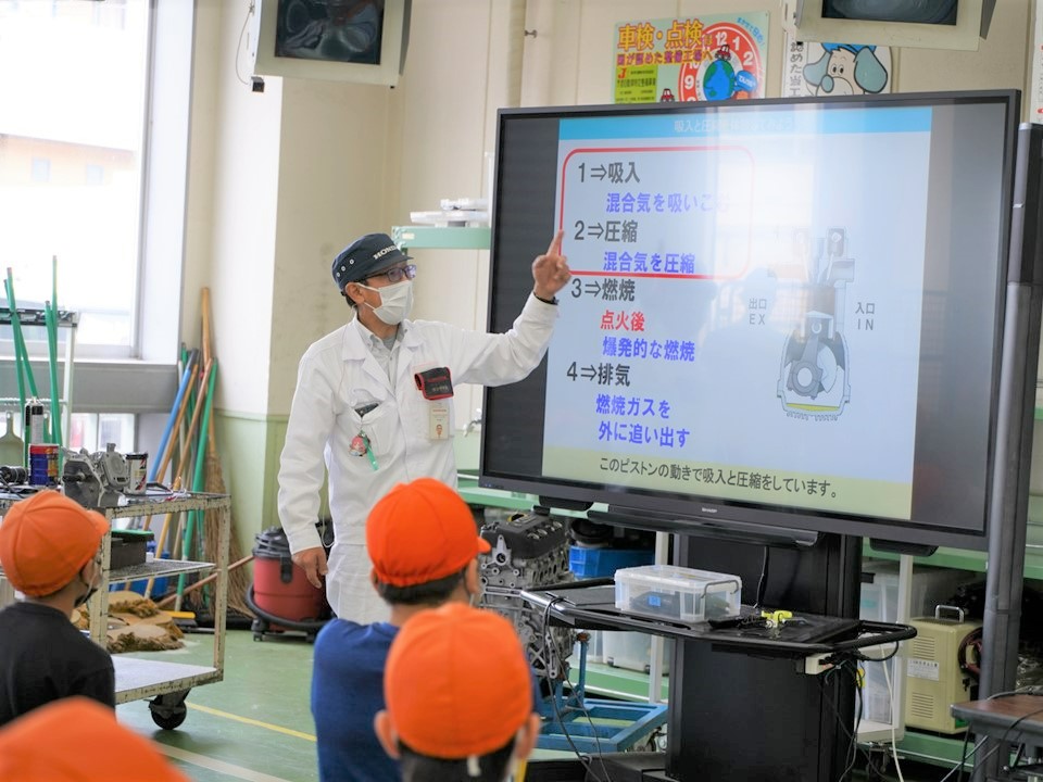 自動車の歴史、エンジンの構造、水素エネルギーについての講義や体験授業を実施