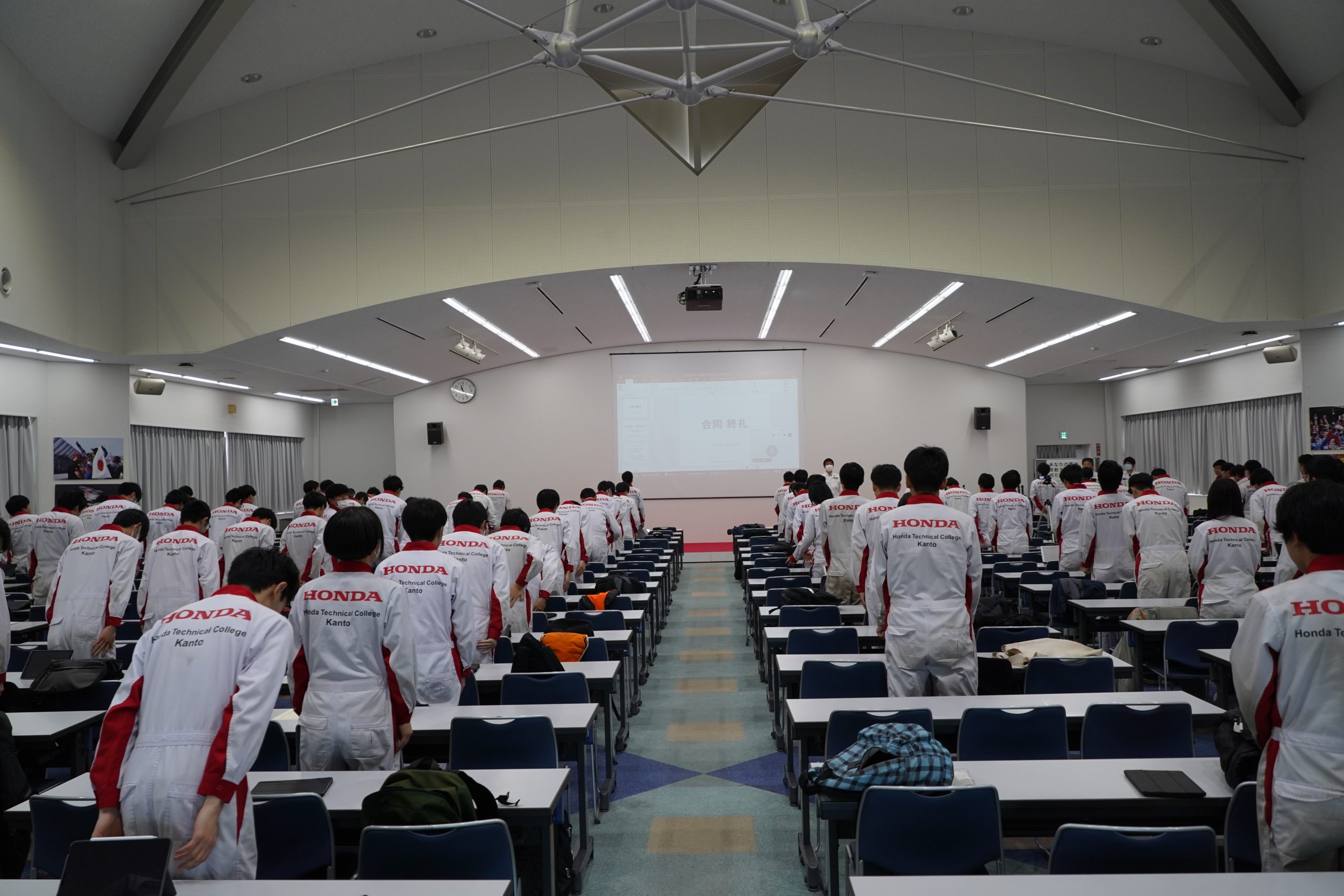 表彰では、サービスエンジニア学科はインターンレポートの優秀者、一級自動車整備学科・研究開発学科は課題発表の優秀者に賞状と記念品が贈られました。
