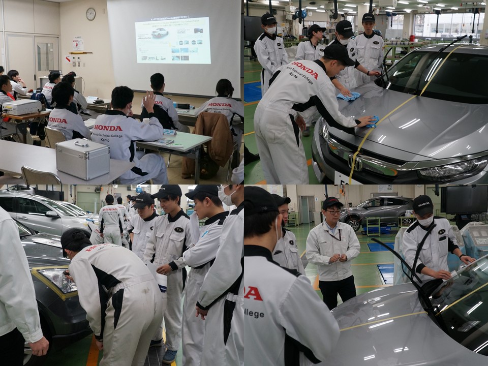 ホンダアクセス様の講師より、ヘッドライトクリーナーやエアコンクリーナー等のサービス方法についての実習。