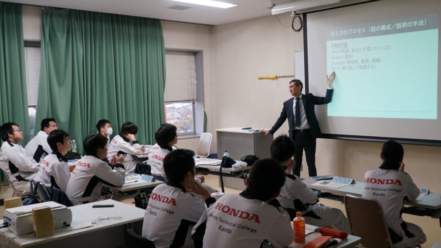 Hondaの講師より、Honda車の電子制御装置故障修理に関する、高度な診断技術や最新の電子制御装置についての実習。