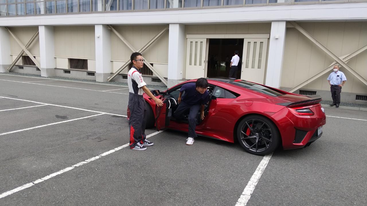- NSXは実際に駐車場を走行し、音やスピードを生で体感して頂きました。