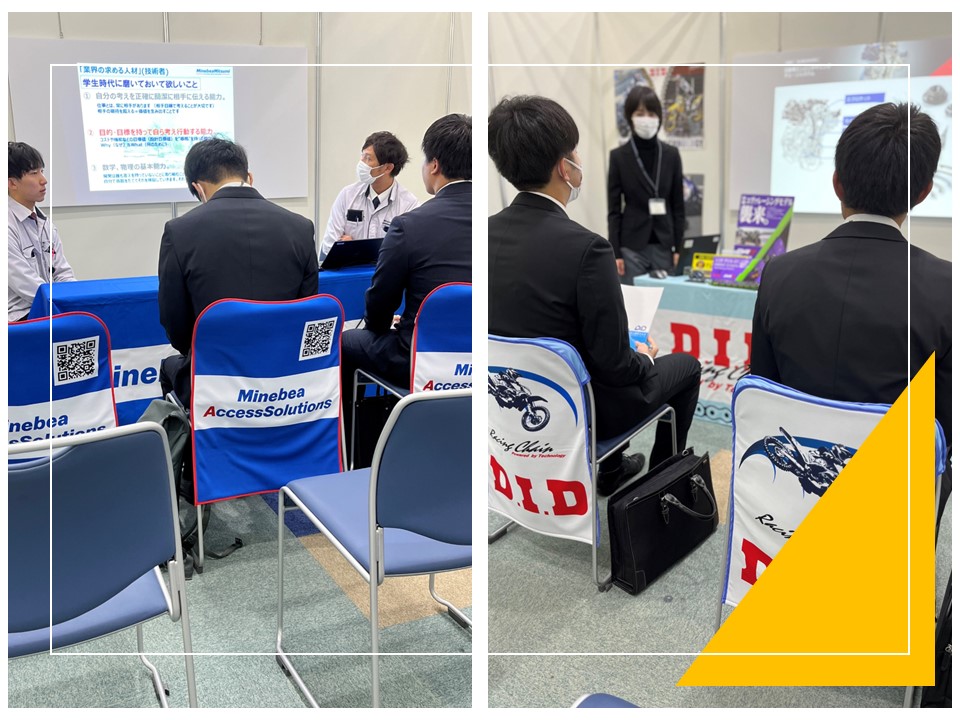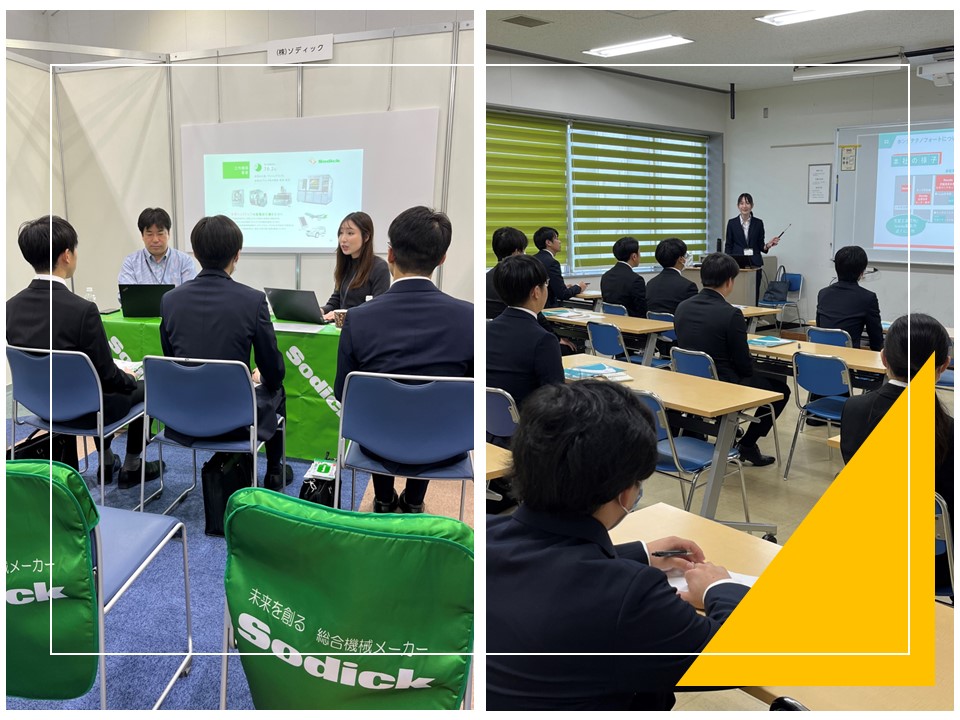 卒業生が人事担当としてご来校される企業様も。学生も積極的に質問するなど、自らの将来を切り拓くチャレンジをしておりました。