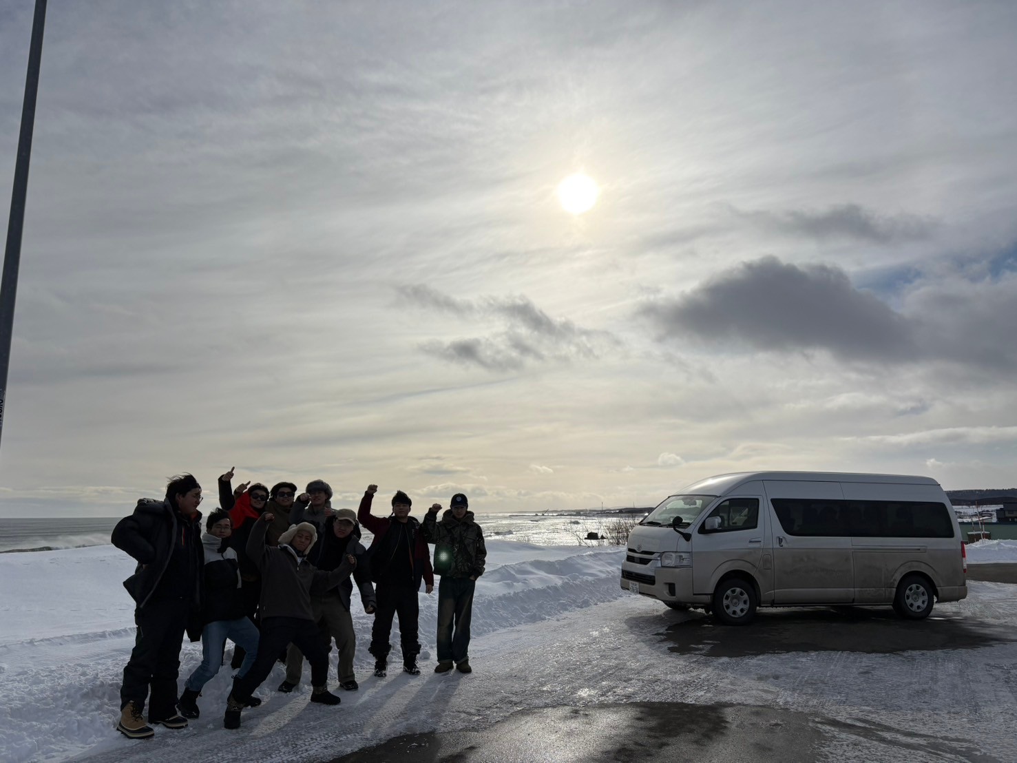 昨日の吹雪の宗谷岬とは違い、若干程度マイナス気温の中、リエゾン区間を経てノシャップ岬へ集合。