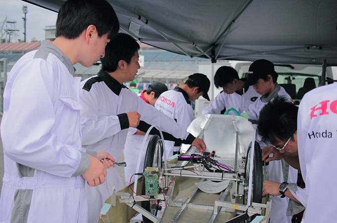 急な大会スケジュール変更にも、学生全員で対応し、車検も合格。