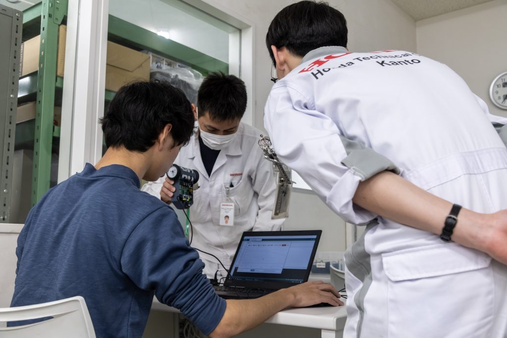校内見学では整備の実習や開発設計のプロセスおよび卒業生の制作物をお見せします。