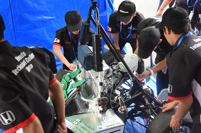 学生たちが1年をかけて作り上げたマシンの結果を出す大会。大会中は毎日、必死に整備を行い、懸命に走り、全種目完走!