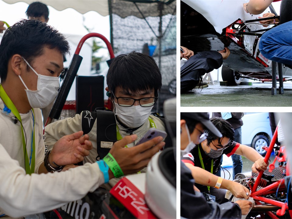 3日目からの動的種目では厳しい雨の中、様々なリスクを考慮したうえで全競技完走を達成する為、朝のオートクロスを出走し、スキッドパッドとアクセラレーションにおいてタイムを記録しエンデュランス出走順を待つのみとなりました。