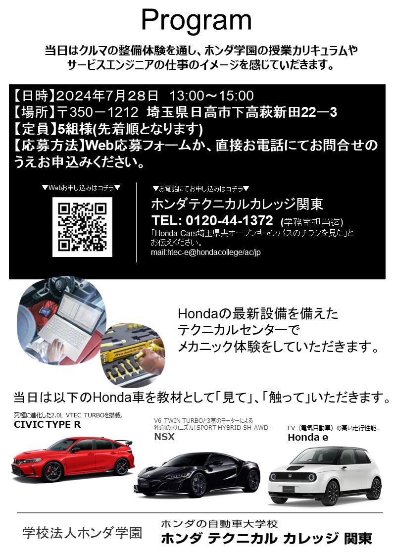 0120-44-1372(学務室) Honda Cars埼玉県央オープンキャンパスのチラシを見たとお伝えください