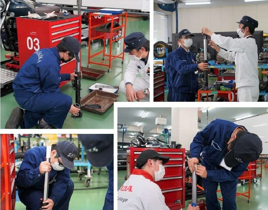 実習体験授業では、CB350のフロントホークオーバーホールを実施!!