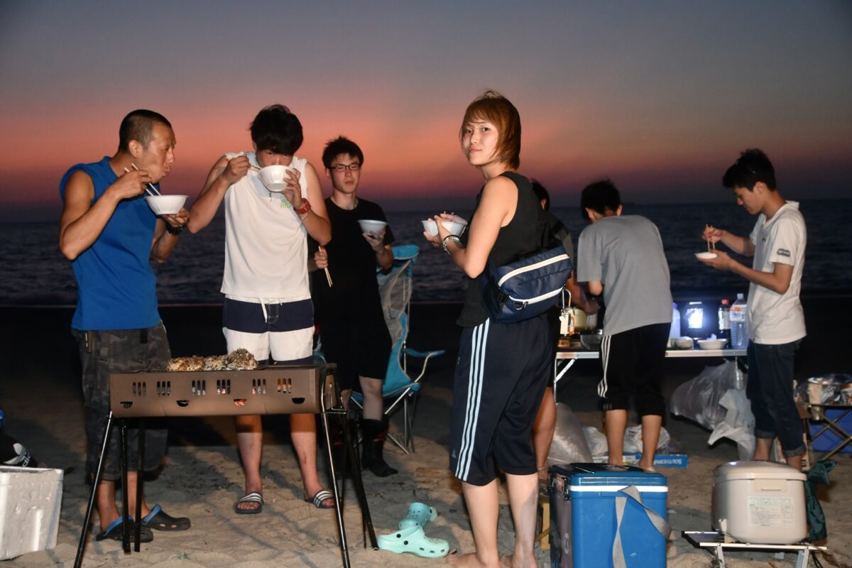 夜のバーベキューでは、本店メンバーから大量の肉のプレゼント。これには学生といえど満腹者続出(笑)