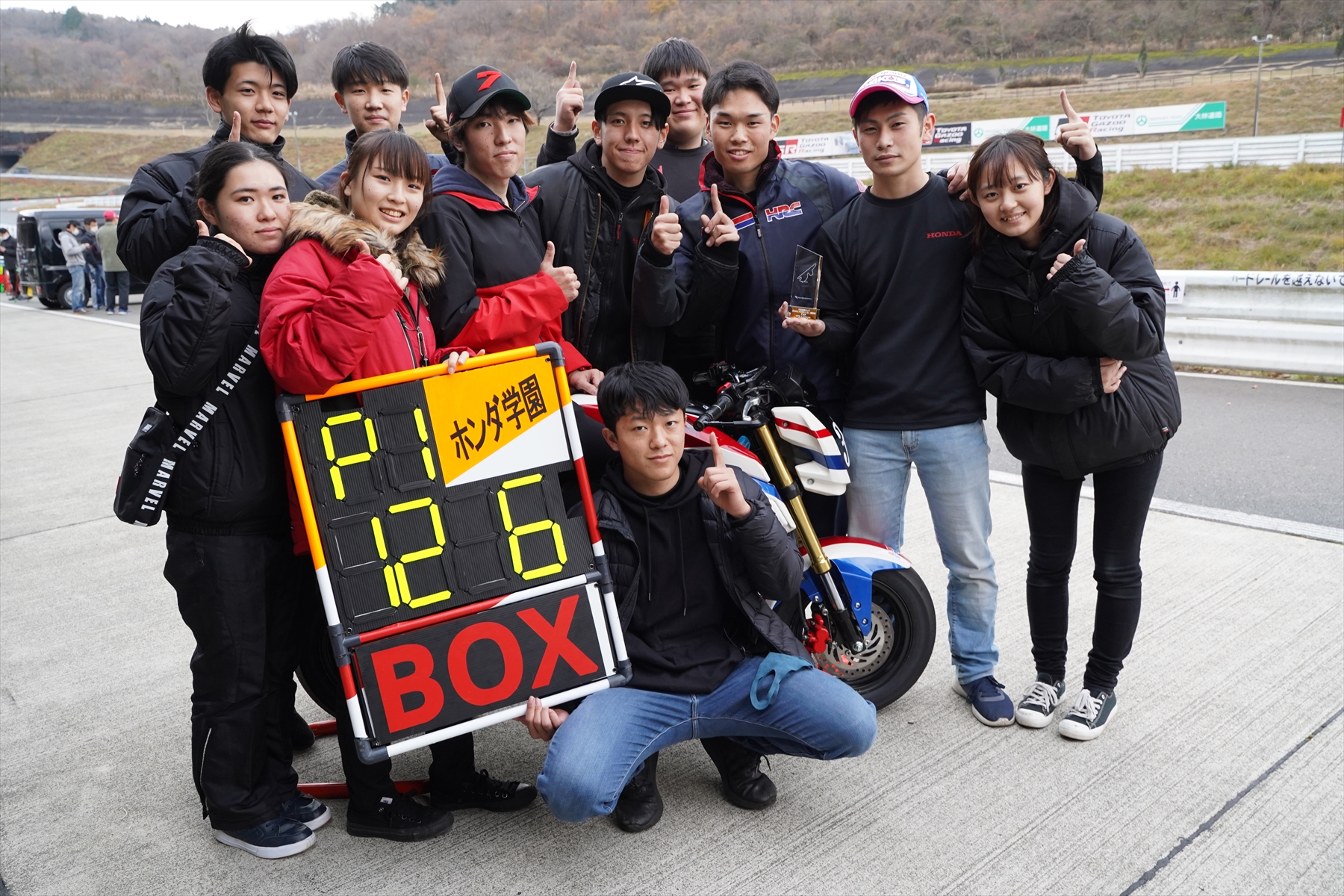 - また、2位と3位はともにホンダ学園卒の先輩方。これもまた最高の瞬間でした!