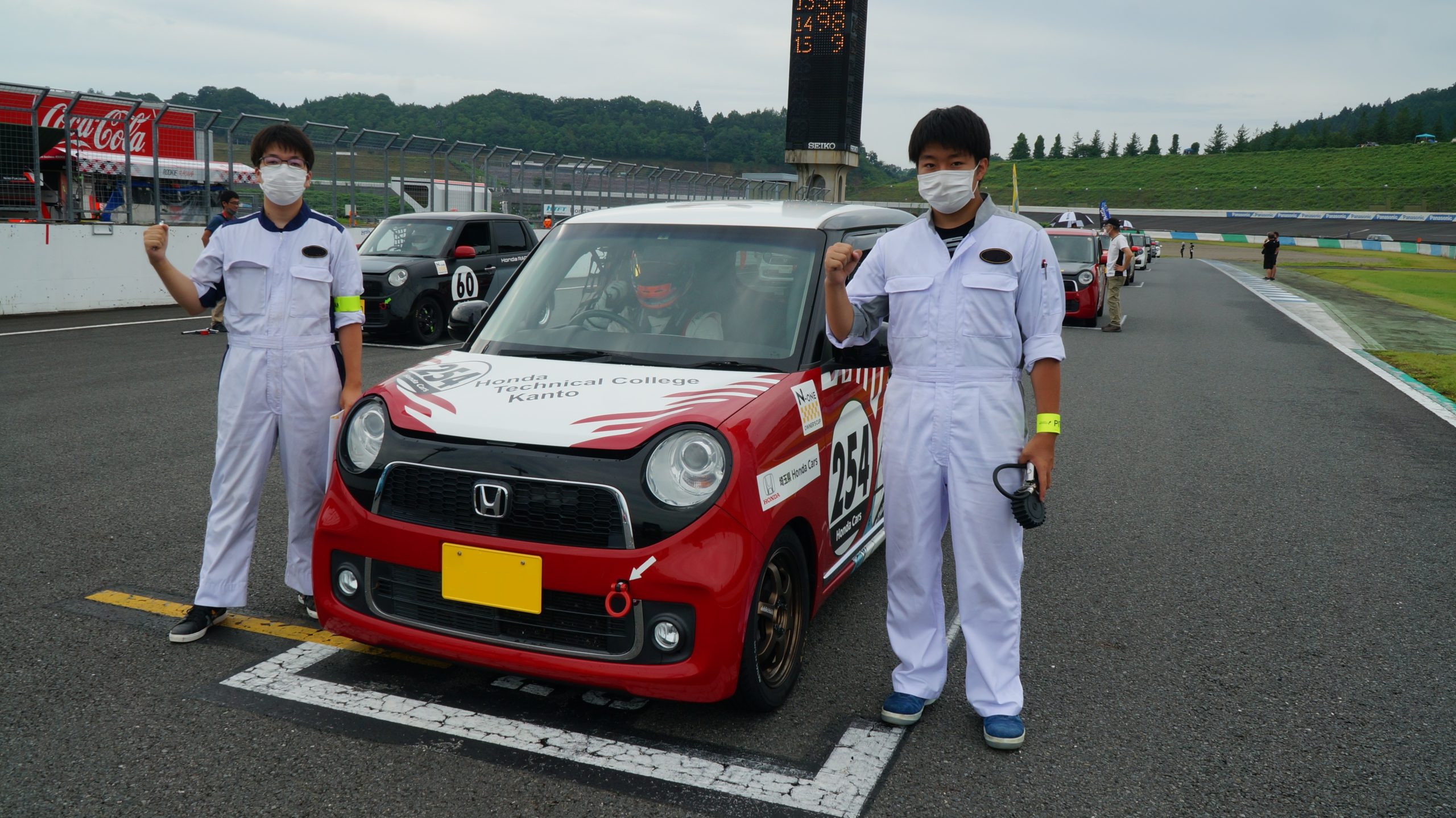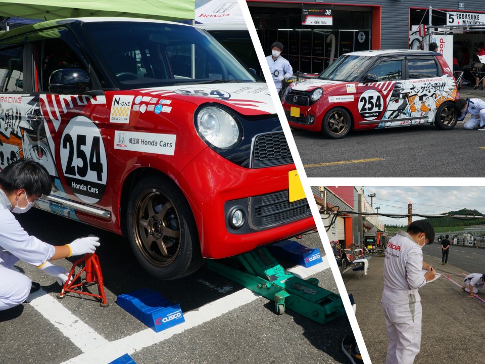 もてぎのN-ONEでの走行は、チームもドライバーも経験が少ない事から他チームの方々よりアドバイスをいただきました。