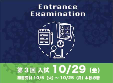 2022年4月入学の第3回入試が10月29日金曜日となります。