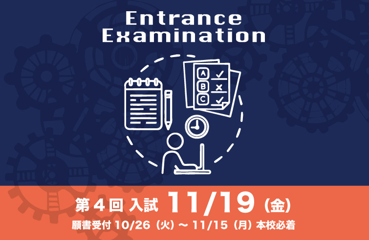 2022年4月入学の第4回入試が11月19日金曜日となります。