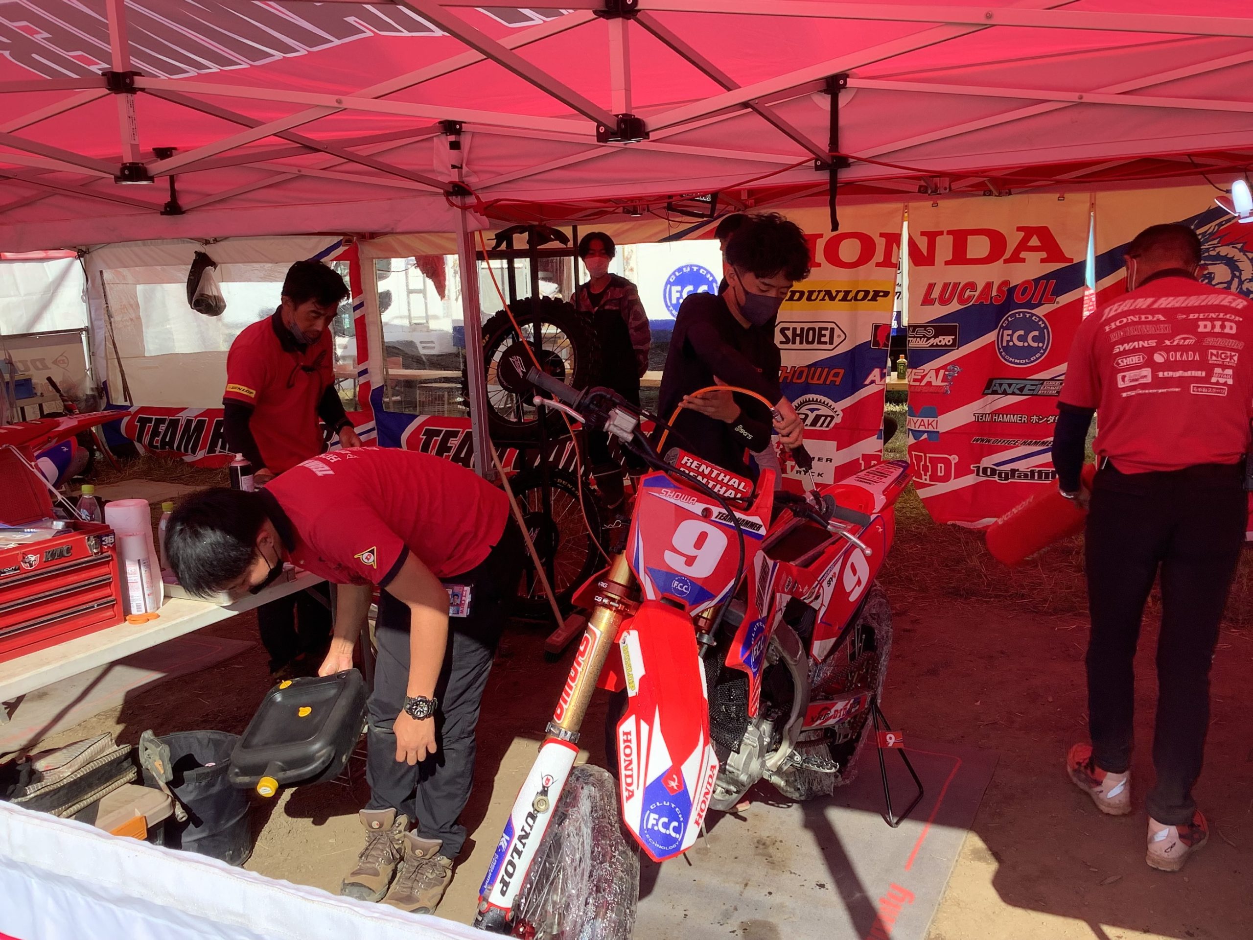 - オフロード部員3名が、全日本モトクロス選手権にエントリーしている『TEAM HAMMER』様のメカニックサポートとして、オフロードヴィレッジで行われた第6戦に帯同しました。