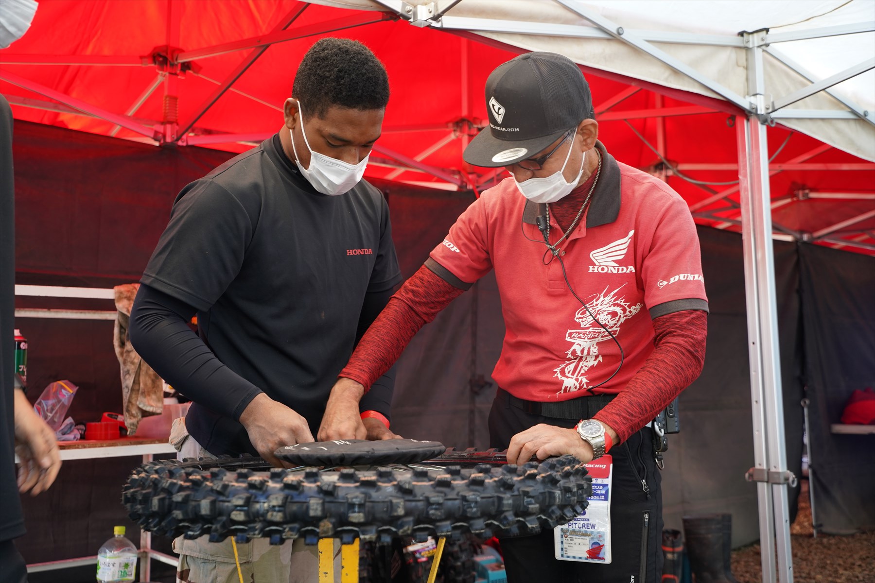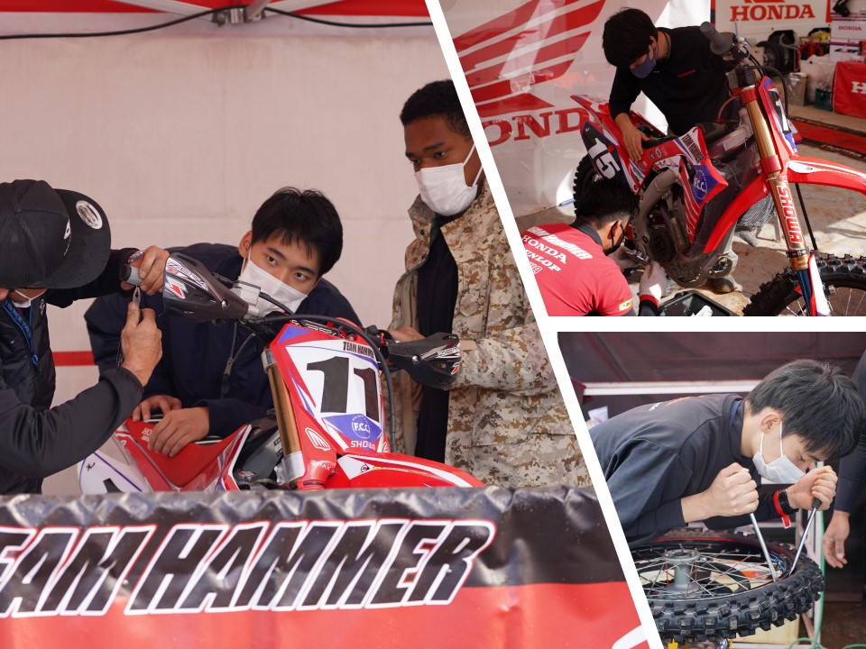 - 初日は緊張からか表情もかたく、作業する時間も短かった様子でしたが、TEAM HAMMERのメカニックの方からの丁寧な指導のおかげで徐々にフットワークが軽くなる2人。