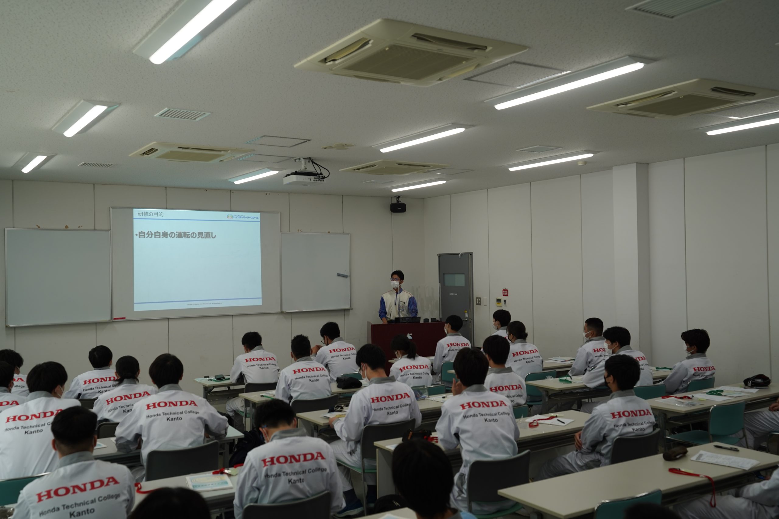 午前中は四輪・二輪ともに安全運転の基本を座学で実施。