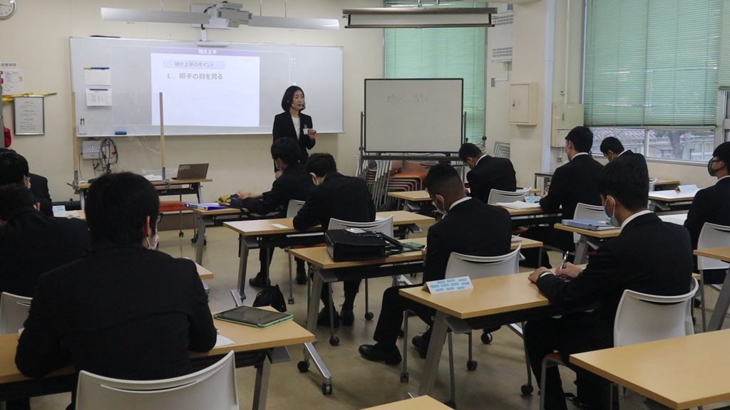 11月6日(金)、自動車整備科1年生の学生を対象として、コムテック株式会社様より接遇マナー研修を実施しました。