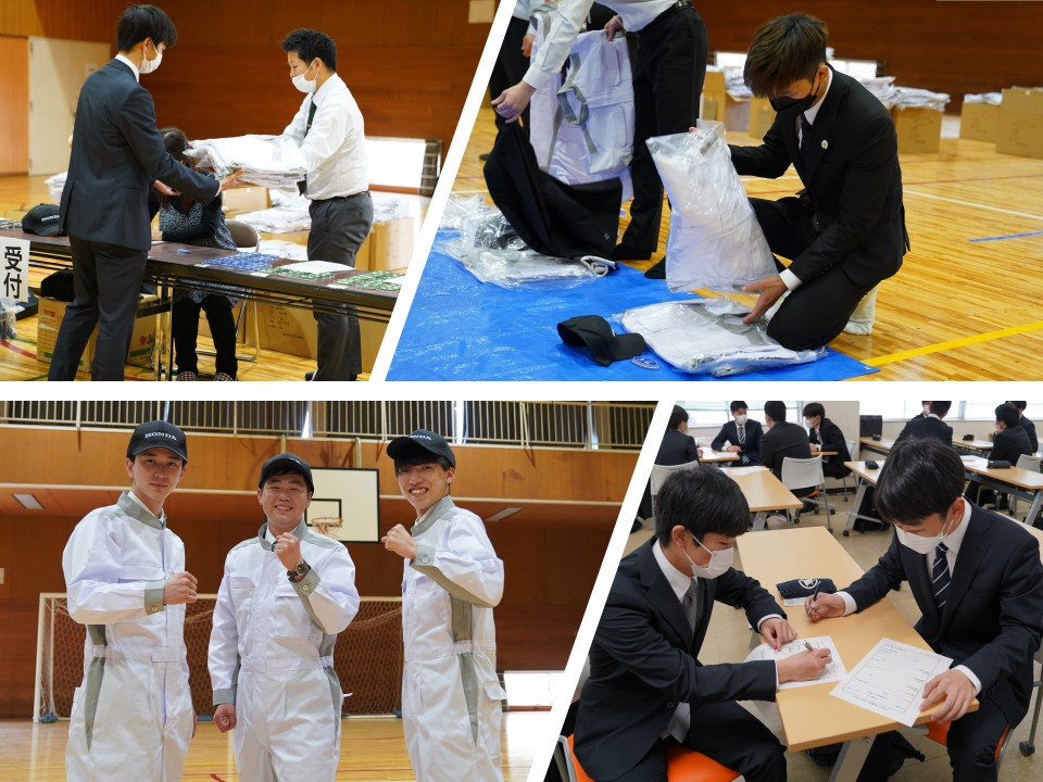 つなぎなどのサイズチェックや校内見学など、これから学ぶ仲間たちと共にホンダ学園での生活をスタートさせました。