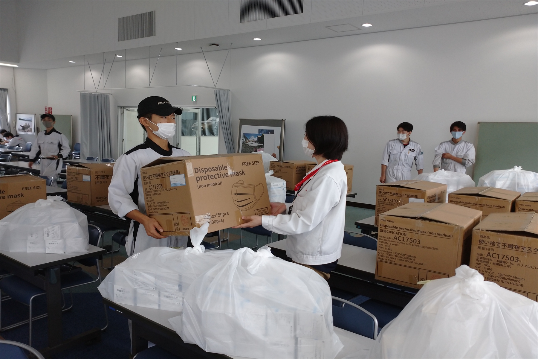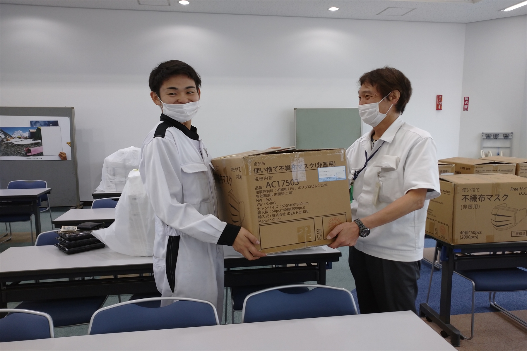 - ホンダテクニカルカレッジ関東後援会から、先日の扇風機35台、ウォーターサーバー16台に続き、学生用のマスク32,000枚(1人あたり50枚)寄付頂きました。