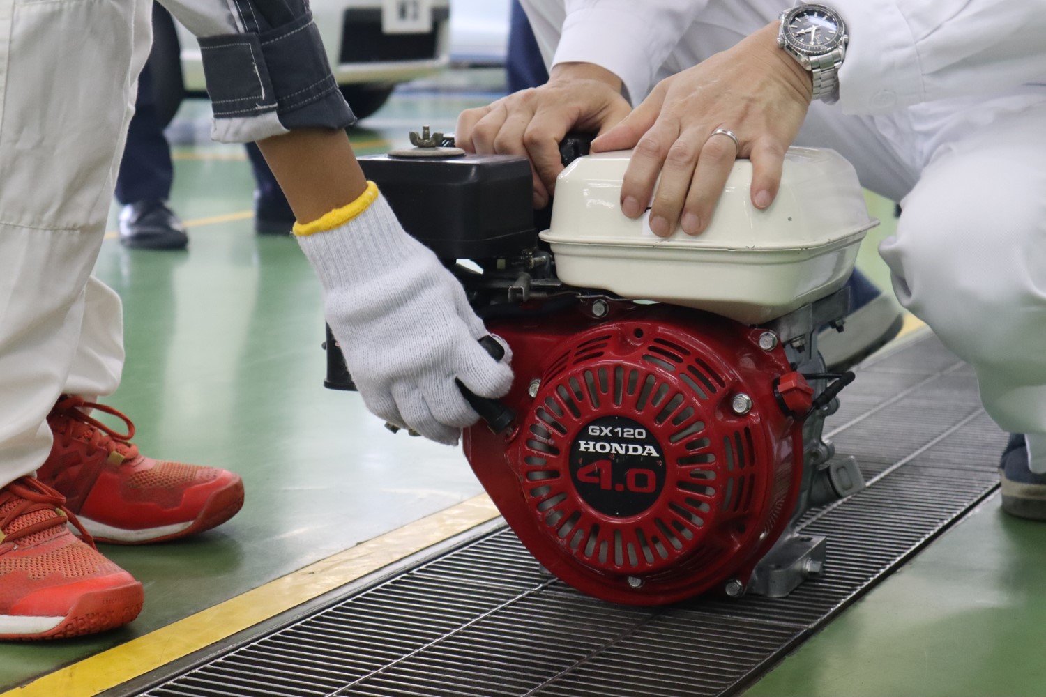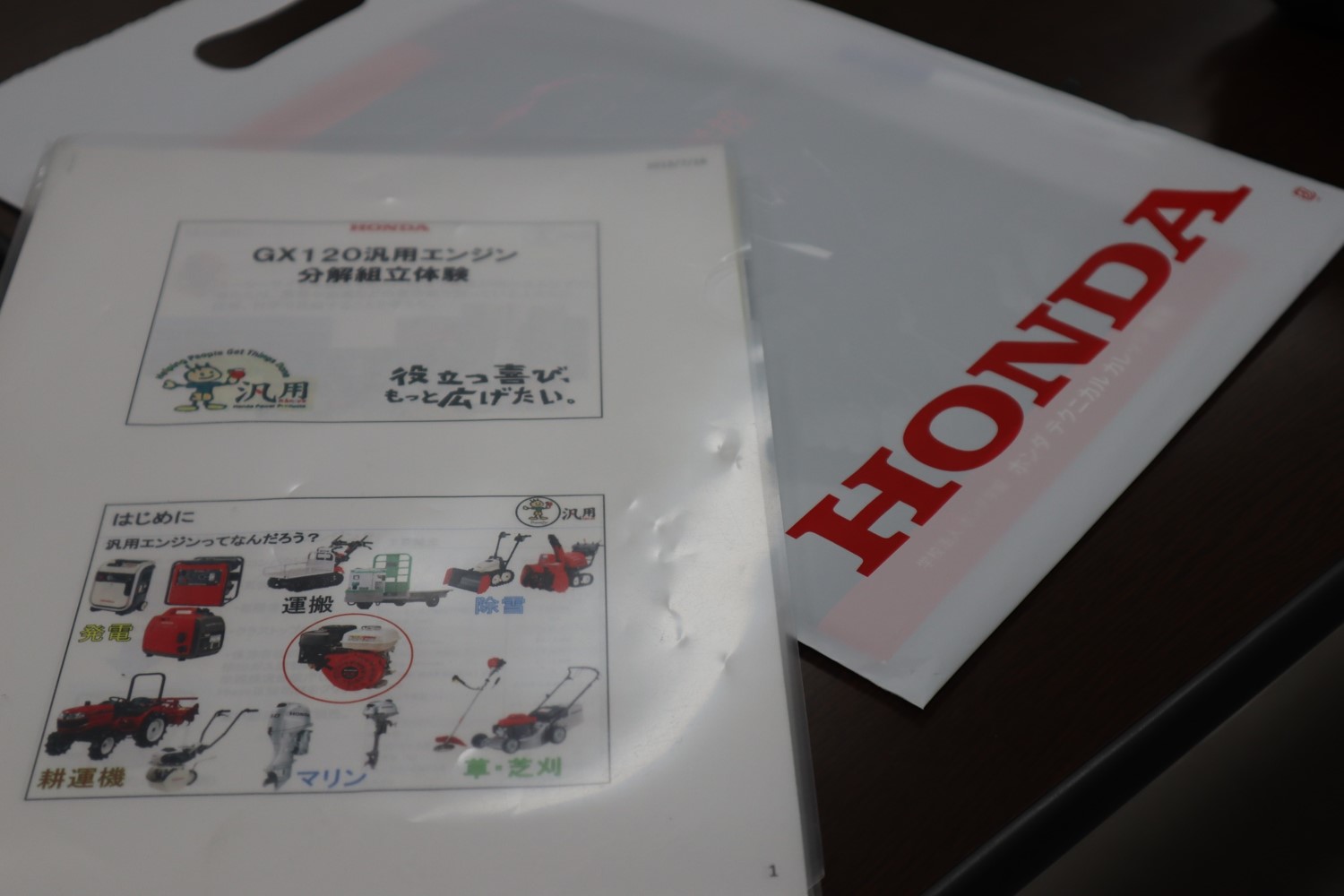 展示車の試乗からはじまり、Honda Jetについての講演。GX120エンジンの分解や、タイヤの脱着といった実習も行いました。