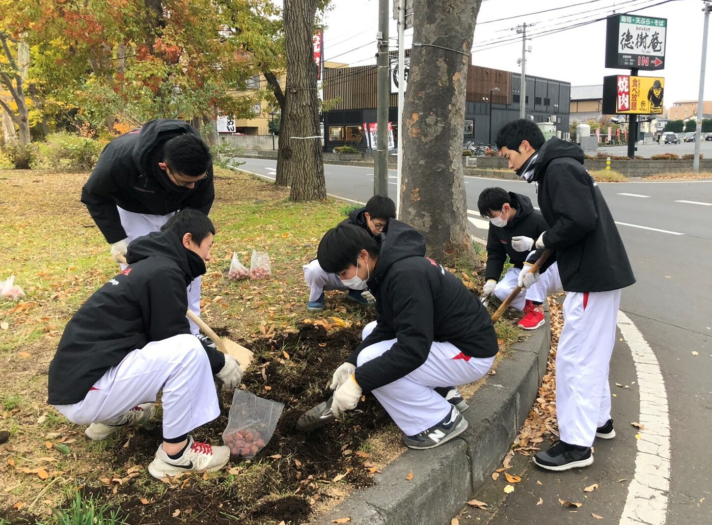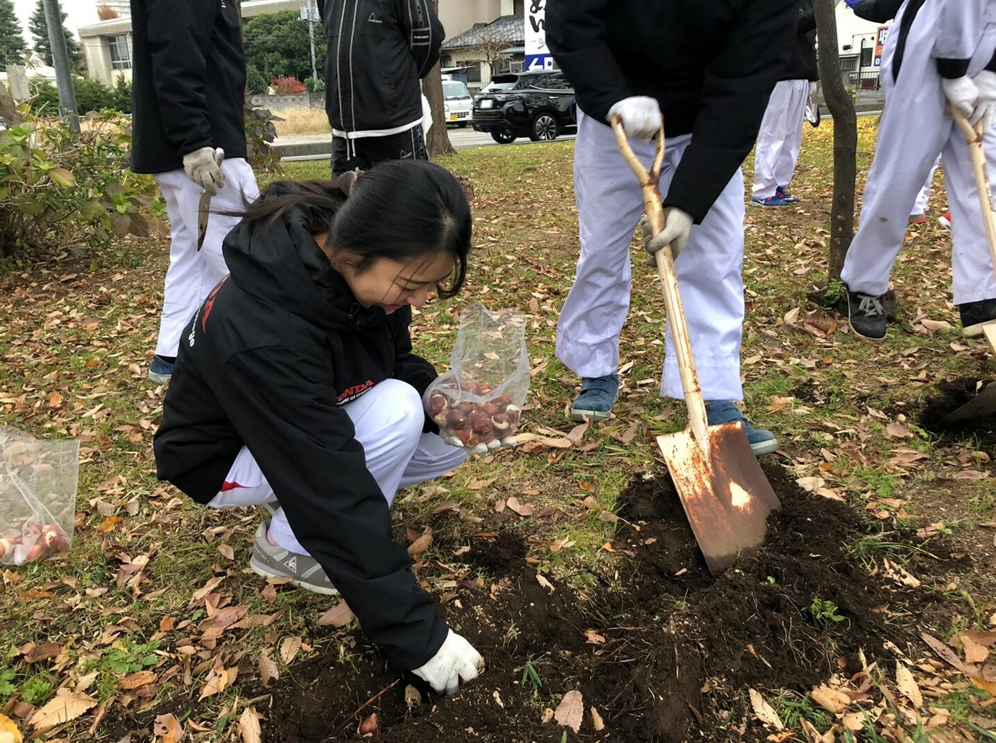 - 12月7日(土)、ふじみ野市の国道254号中央分離帯にチューリップの球根800個を植え付けしました。