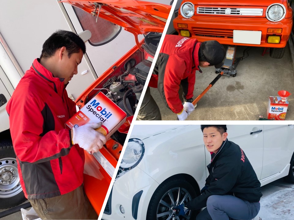 故郷で、つかの間の休息を楽しみつつも、授業で学んだタイヤ交換や、車のメンテナンスを手伝う姿が。