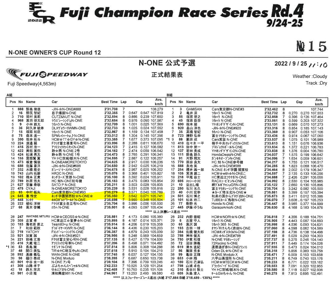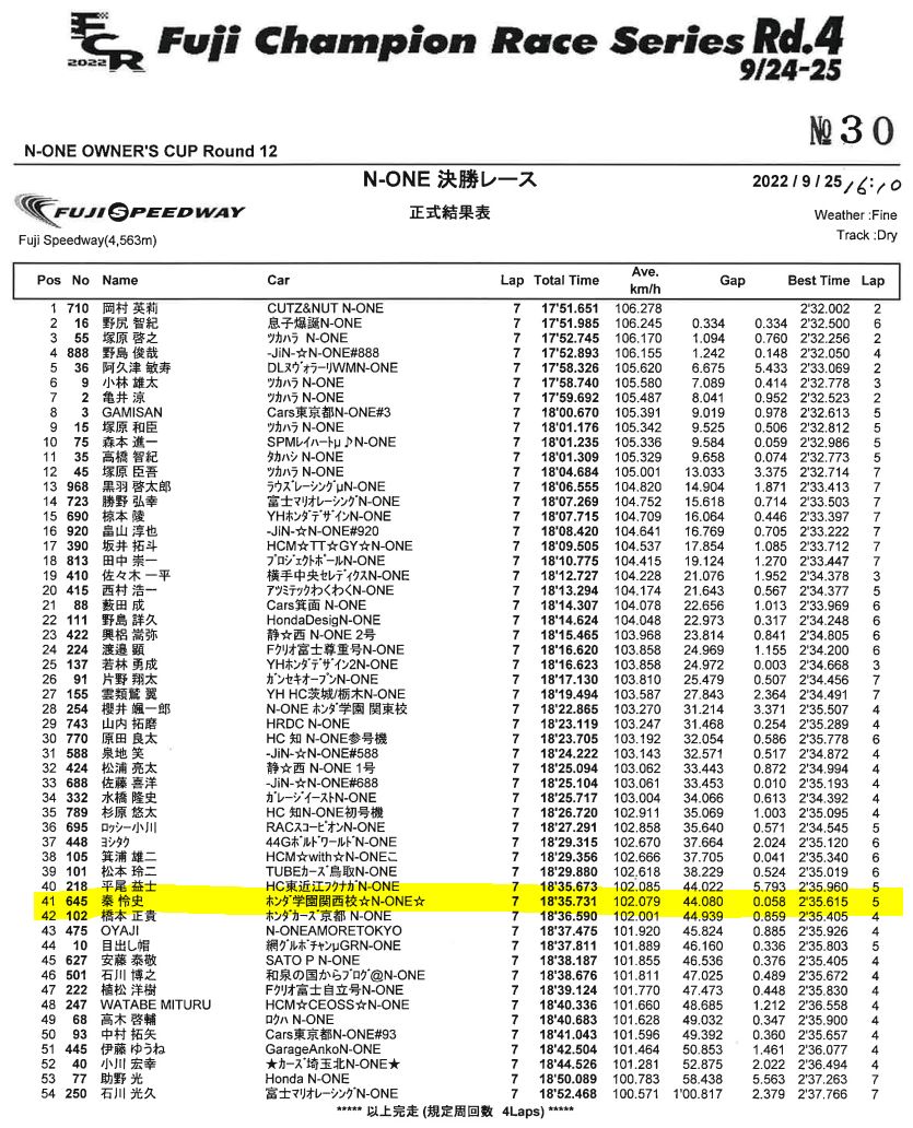 【‴参戦‴】N-ONE OWNER‘S CUP 第12戦@富士スピードウェイ