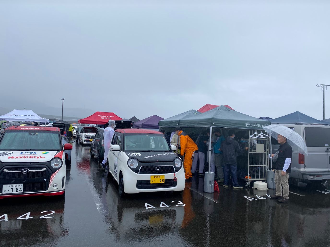 昨日から降り続いている雨に見舞われる中、1・2年生がメインで準備を進めるのが初めてということもあり、車両準備に時間がかかったものの無事にフリー走行に間に合わすことができました。