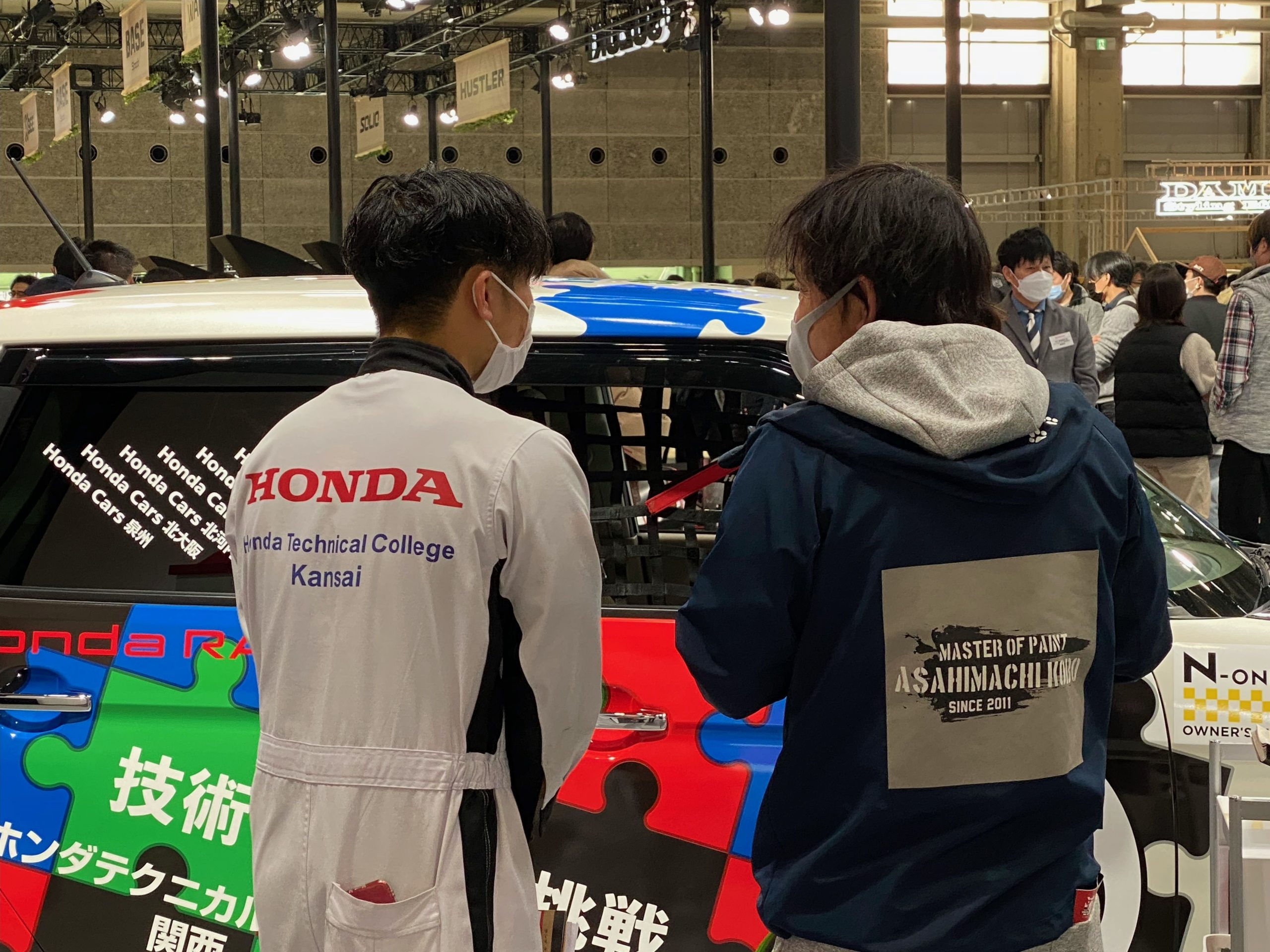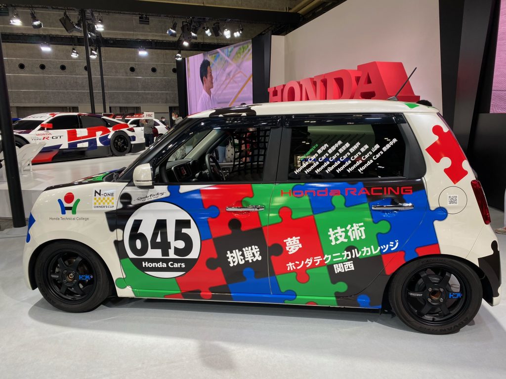 2月10日~12日の3日間、インテックス大阪にて行われた『オートメッセ大阪2023』に学園のH-TEC R&M同好会のレース車:N-ONEを新カラーリングに施し、お披露目しました。また、同好会に所属する学園生も説明員に立ち、来場者の皆様へご説明させて頂きました。