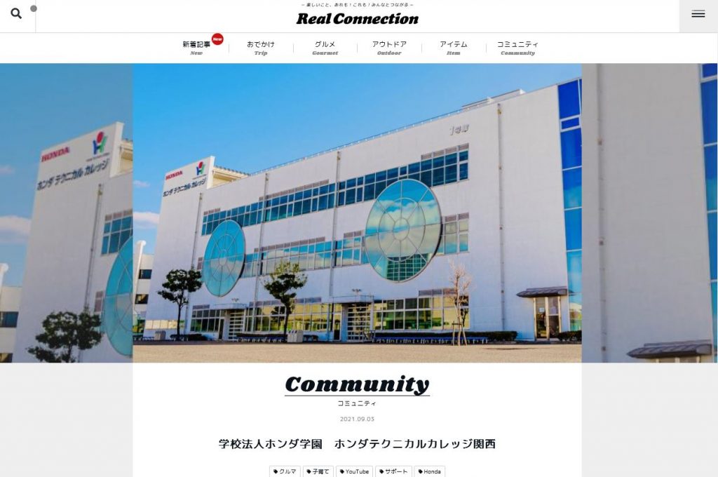 大阪府・和歌山県・奈良県に四輪販売店=Honda Carsを展開している株式会社ホンダ四輪販売関西様の情報サイトに本校が掲載されました。情報サイトー楽しいこと、あれも!これも!みんなとつながるー「Real Connecticon」のコーナーです。このコーナーは、「新着記事」「おでかけ」「グルメ」「アウトドア」「アイテム」「コミュニティ」と盛りだくさん。ぜひ一度ご覧ください。