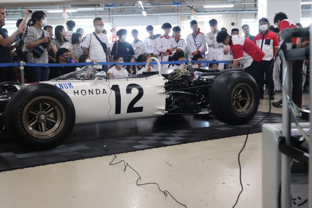 恒例!(^^)!のプロライダーによるバイクの「トライアルショー」は、多くの見学者で溢れかえり、歓声と笑い声が途絶えることのないショーになりました。また、Honda75周年を記念した各種展示物には、思い思いのポーズでたくさんの写真を撮っていただけました。そして、今回の特別展示車で一番の目玉、F1車両「RA272」のエンジン始動では、学園生・来場者ともにボルテージが最高潮に達し、エンジン始動と共に大歓声が沸きました。(*^^)v