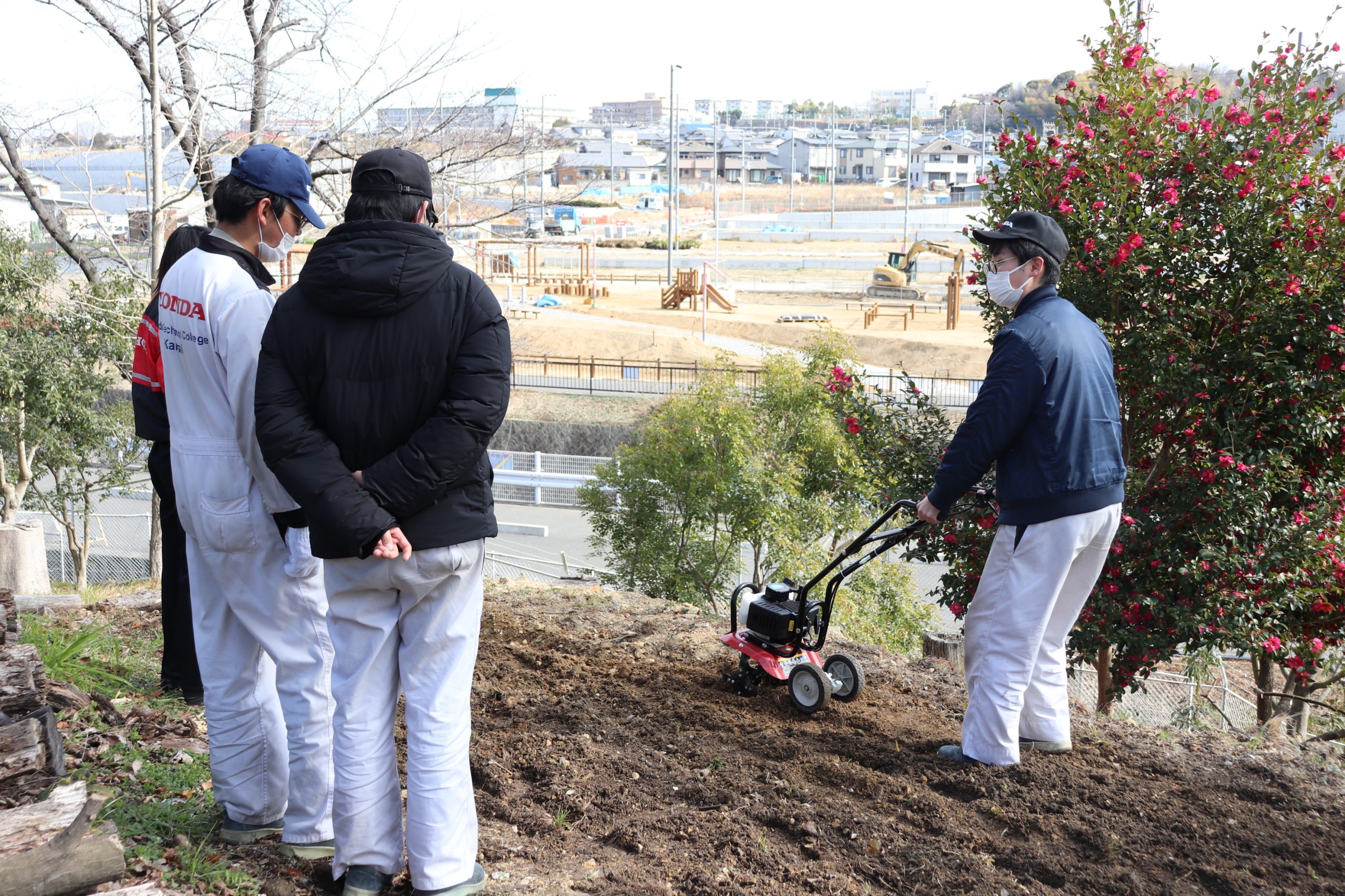 2月17日(金)にホンダテクニカルカレッジ関西の敷地内で、Honda の耕うん機(ピアンタ)を使ったオリジナルの体験授業を実施しました。ピアンタの燃料は交換や持ち運びが楽なカセットガスの燃料です。ボンベ1本で約1時間も耕せます。今回の授業では、他社製品との比較も行い、違いを確認しました。
