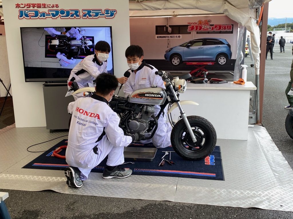 11月19・20日に、約3年ぶりにEnjoy Honda九州(熊本県で実施)が開催され、キッズメカニック学園のブースに学園生7名が参加させて頂きました。当日は、ブースに訪れたお子様のメカニック体験のサポートをさせて頂き、また、ステージ上でHondaのバイクAPEの分解・組み立てを学園生が実践し、多くの方に見ていただきました。たくさんのご来場、誠にありがとうございました!(#^^#)
