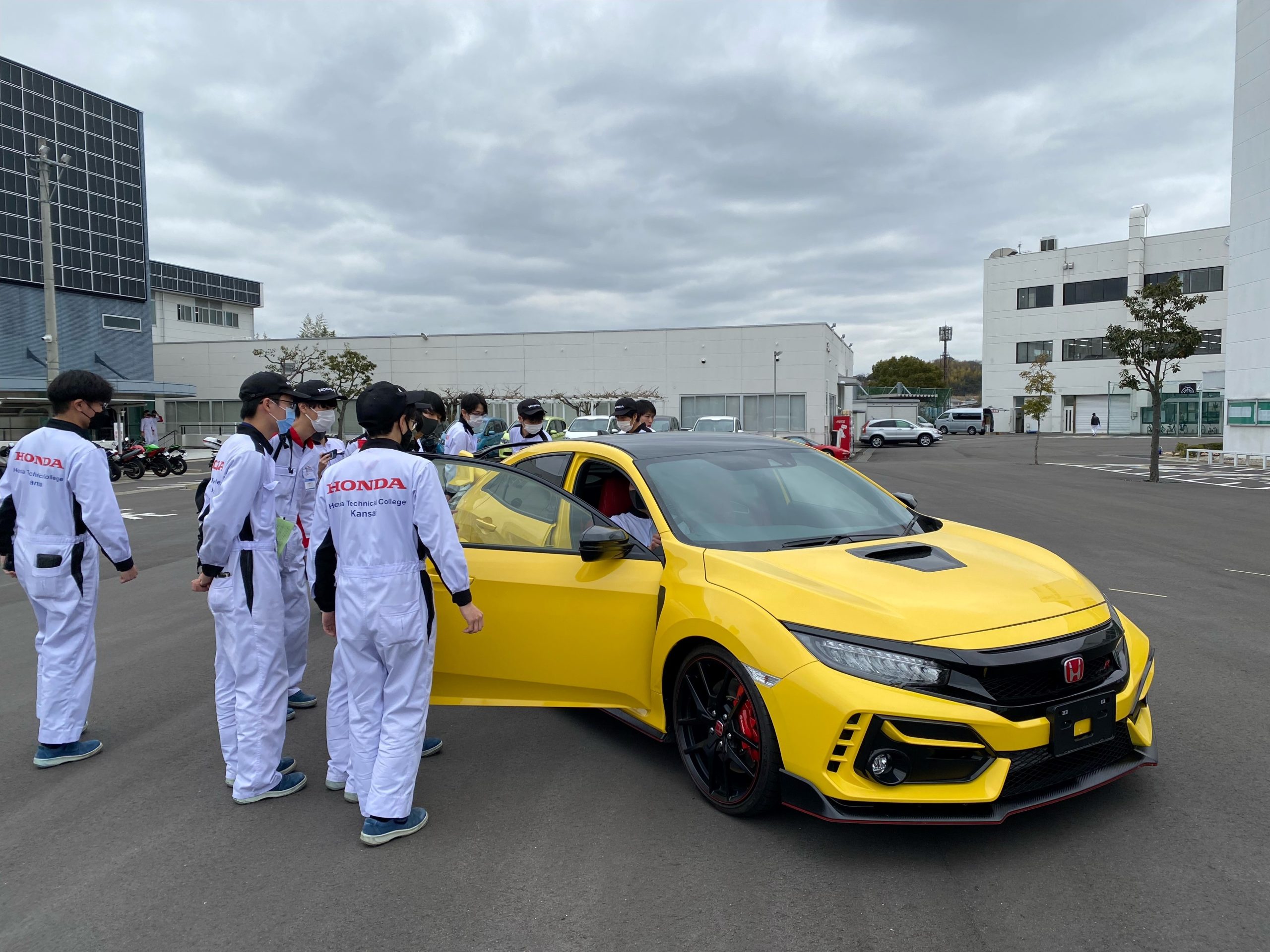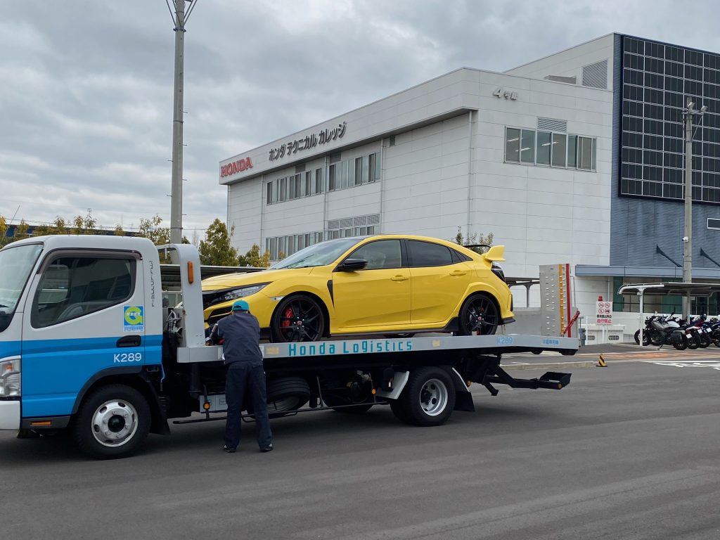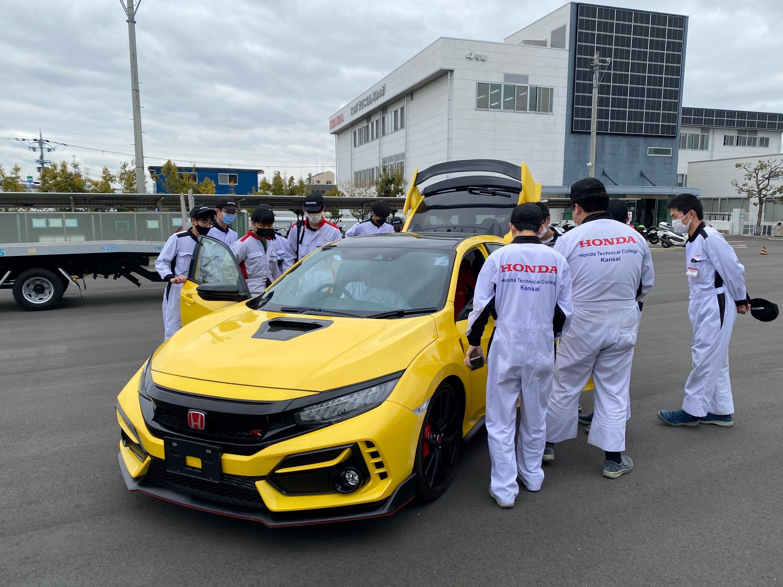 【キター!】CIVIC TYPE Rがホンダテクニカルカレッジに!! 2023.02.23 2月16日(木)に要望していた黄色の「CIVIC TYPE R」がホンダテクニカルカレッジ関西に入庫しました!! 校庭で積載車から荷下ろしすると、すぐに学園生で人だかり(#^^#)。 この度は、「CIVIC TYPE R」のご提供、誠にありがとうございました。大切に活用させて頂きます。