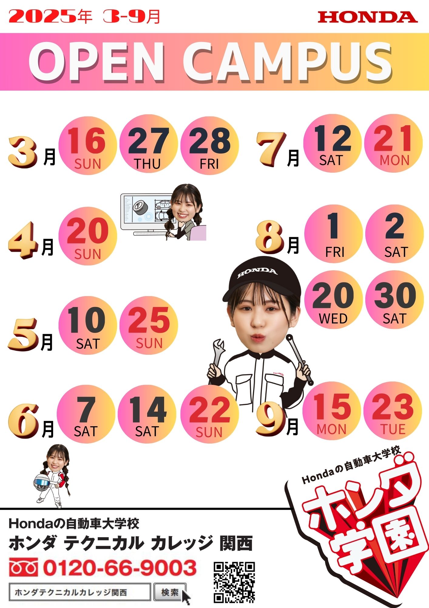 高校3年生の皆様、既に高校を卒業している方(留学生除く)、ホンダ学園のオープンキャンパスにいち早く参加し、AO入試のエントリー資格を獲得しよう!