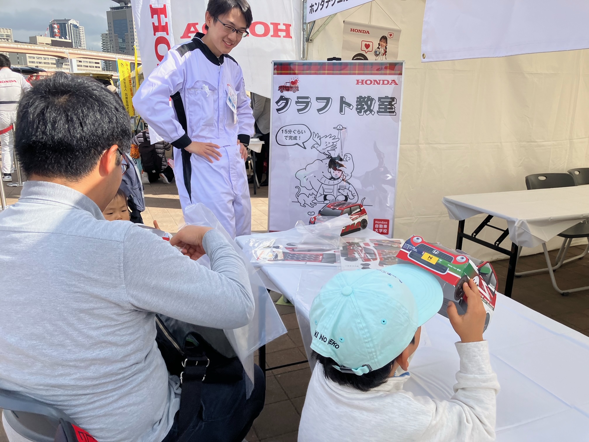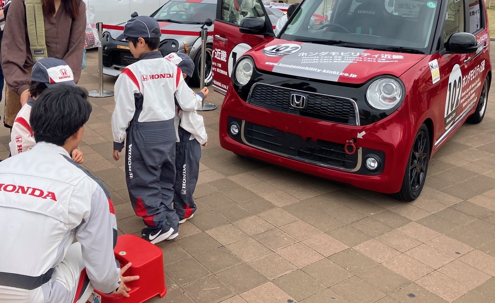 11月16日(土)、17日(日)の2日間で神戸のハーバーランドで開催された「兵庫カーフェスタ2024」には、1.3万人の方が来場いただき、また、学園ブースにも多くのご家族連れが来てくれました。学園ブースでは、展示車両のN-ONEレース車両のクラフトづくりを実施し、また、隣のブース(ホンダモビリティ近畿様)で実施した「KIDSメカニック」のサポートもさせていただきました。