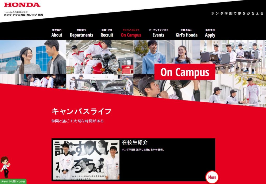 3月15日(月)にHPの情報を2022年4月入学生向けへ全て更新します。TOPページや学科案内の学生写真変更、就職・資格情報の更新と動画追加、在校生紹介ページの学生増、資料請求・オープンキャンパス予約方法の変更、更に女子学生向けコーナー(Girls Honda)の新設と盛りだくさん。